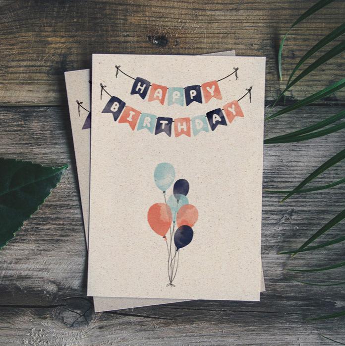 This sustainable greeting card made from gras paper says "Happy Birthday" to your most loved ones. It comes without an envelope.