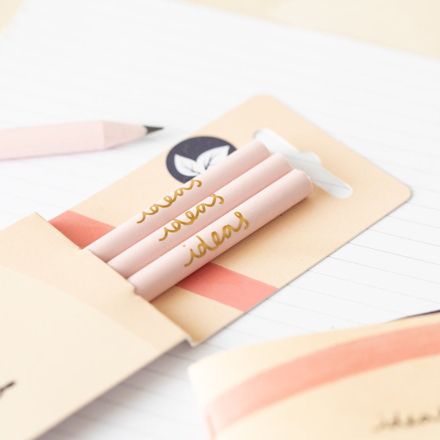 Ignite your creativity with the "Ideas" recycled pencils in light pink. These eco-friendly pencils combine sustainability with a soft, stylish hue, making them perfect for writing, sketching, or brainstorming new ideas. Crafted from recycled materials, they’re a thoughtful choice for anyone who values both style and environmental responsibility.